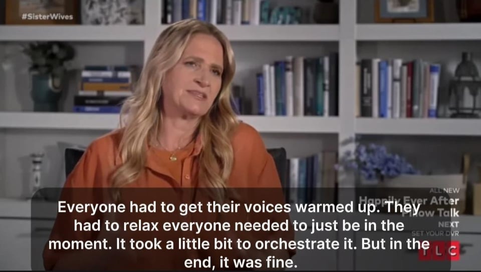 I thought that the singing Christmas carols was such a cute scene, especially Janelle holding up the words rather than singing in the confessional