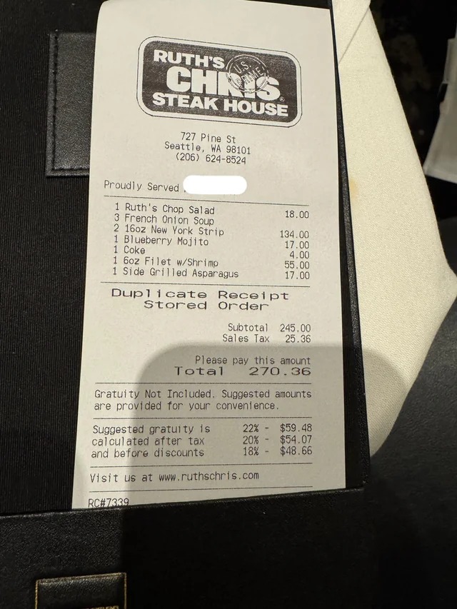 After tax basing for gratuity…. However the soups I see now were comped. I can reward that at least