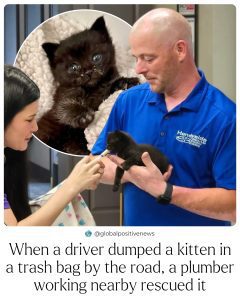 Jason Schwartz, a plumbing technician at Handyside Plumbing in Etters, PA, was gathering tools from his car. He noticed a trash bag moving after someone had dumped it by the roadside. + Initially thinking it might be a snake, Jason used a pipe to move the bag. That’s when he discovered an abandoned kitten inside. […]
