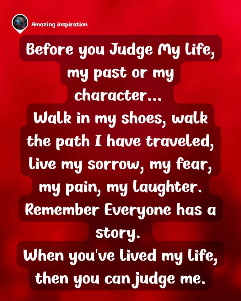 Before you judge my life 👣💔 walk in my shoes, feel my pain, my joy, my journey 🌧️🌈 Everyone has a story — live mine before you judge me 🙏✨