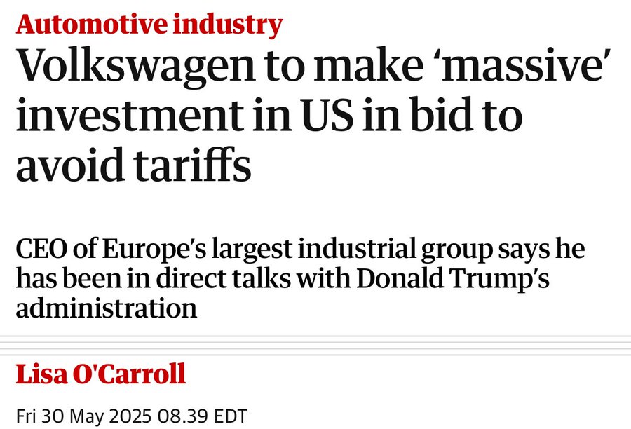 🚨BREAKING: German automotive giant Volkswagen to make a huge investment into the United States.