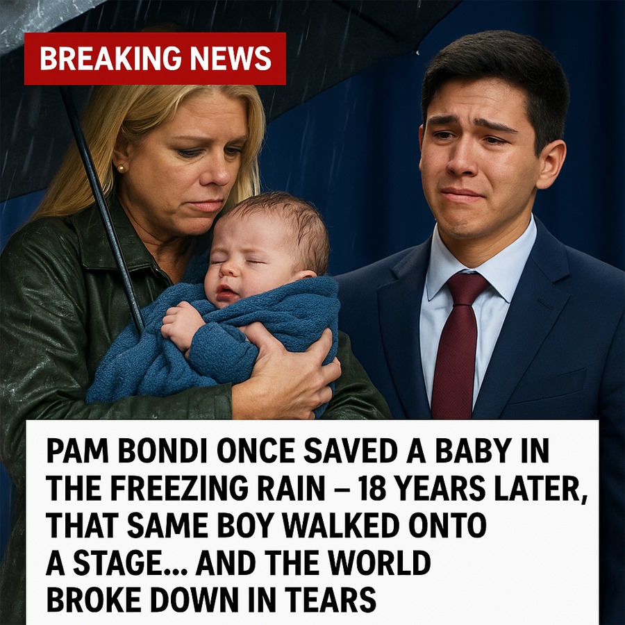 🔥BREAKING NEWS: Pam Bondi once saved a baby in the freezing rain — 18 years later, that same boy walked onto a stage… and the world broke down in tears 💔