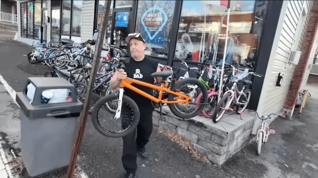 Most days, up to 20 free bikes line the sidewalk outside Back in the Game Sports.