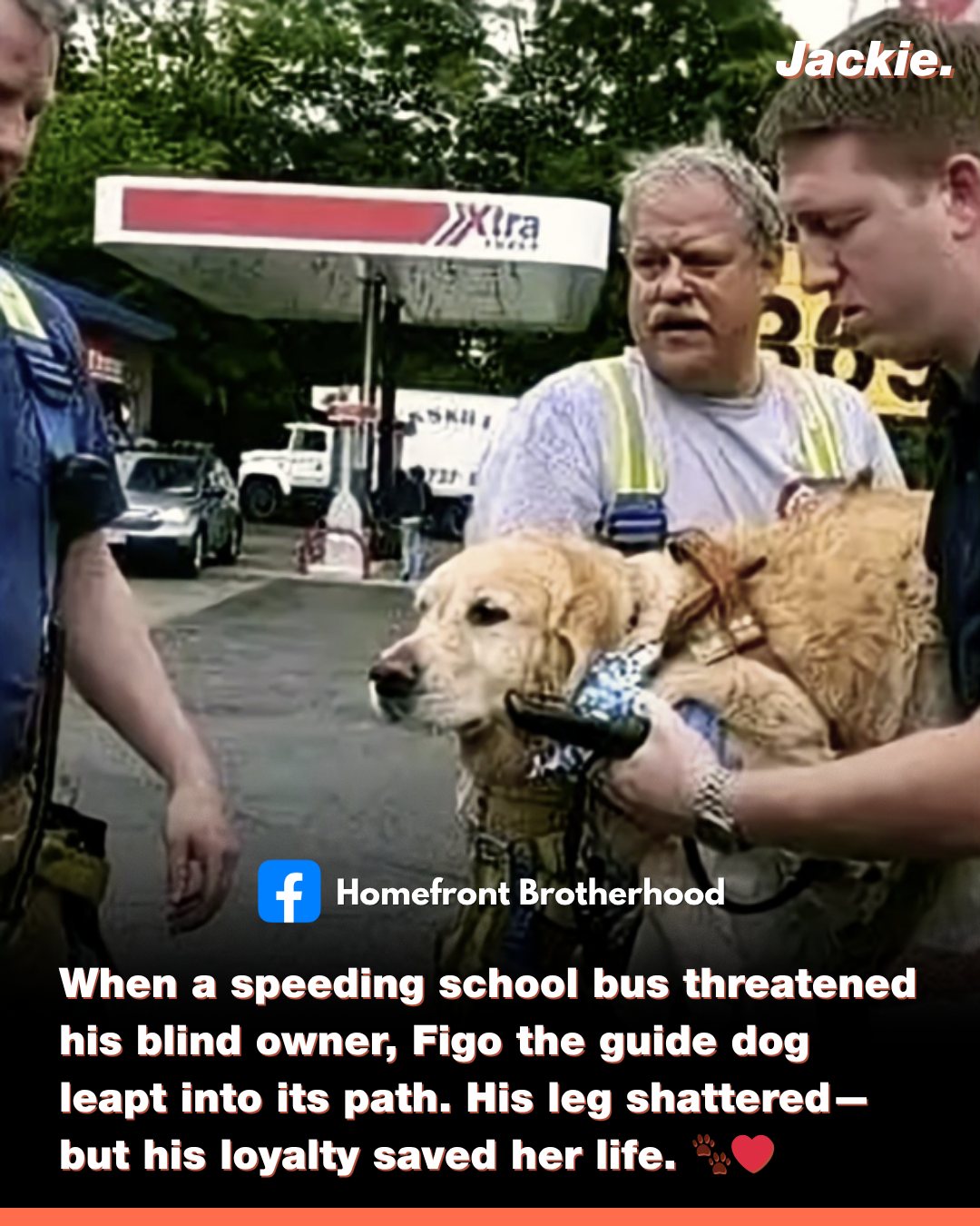 When a school bus sped toward his blind owner, Figo the service dog jumped in front—taking the hit himself. His leg was shattered, but his spirit never broke. He crawled to her side, refusing to leave until help arrived.