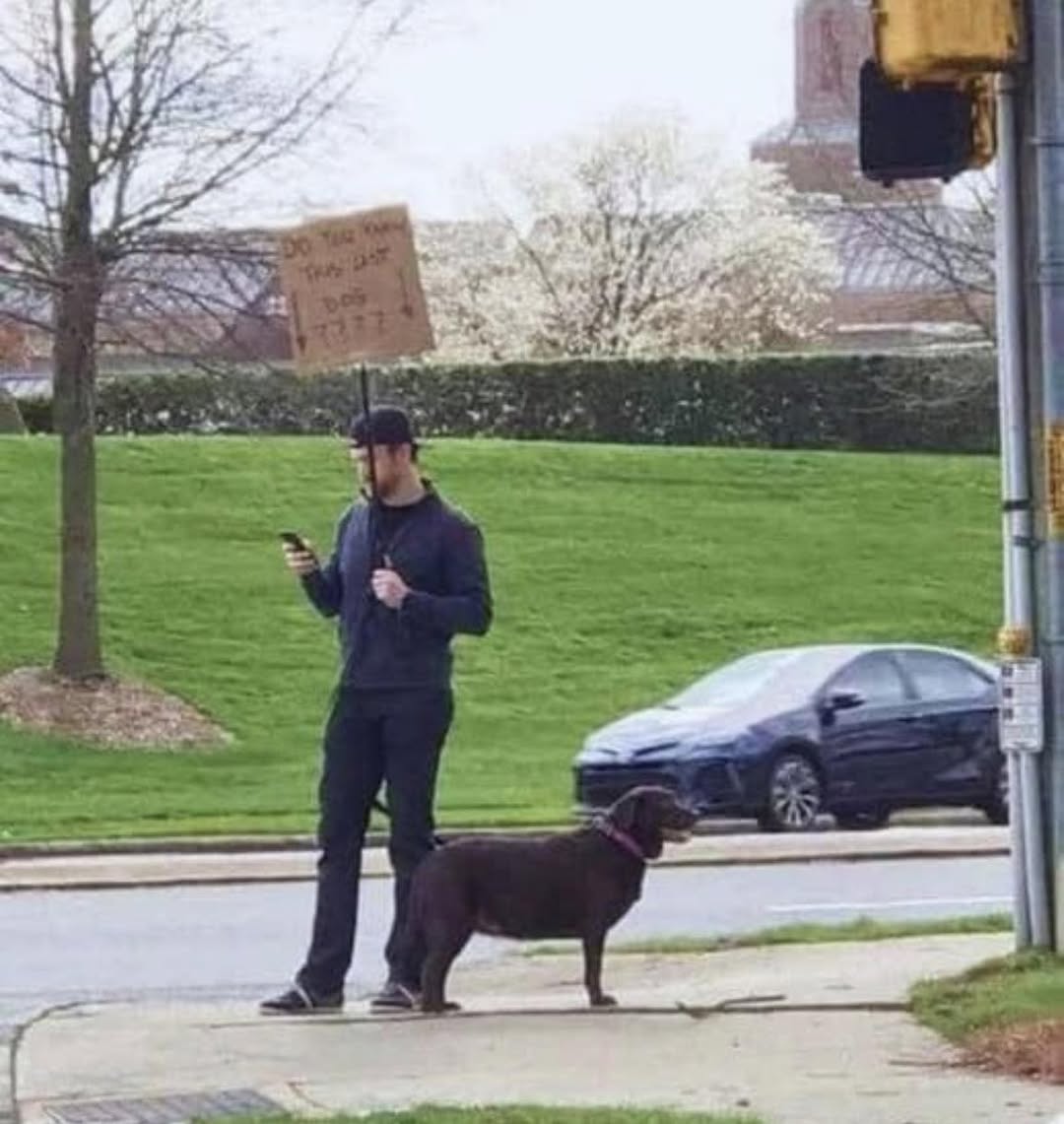 In doing so, he spent a lot of time on the streets with that dog, holding a hand-made sign that read: “Do you know this lost dog?” He was hoping that the owner of the dog would drive by and see the lost pet.