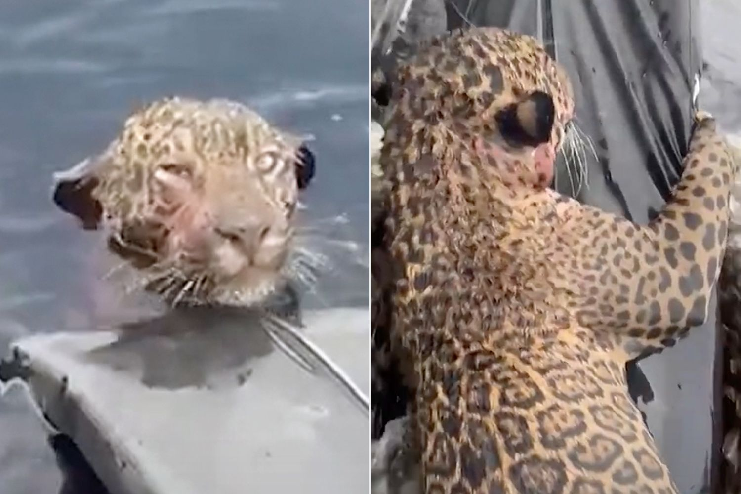 A wounded jaguar fighting for its life in the waters of Brazil’s Rio Negro was rescued in a dramatic operation led by local authorities.
