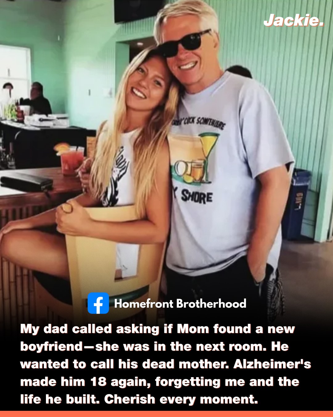 “My dad called and asked if Mom had found a new boyfriend—even though she was sitting in the next room. Then he said he’d call Nana Betty, his mother who passed away before I was born.In his mind, he was 18 again. Alzheimer’s had taken away his memories of Mom, of me, and of the life he built.I broke down in tears, realizing how fast time and memories can fade.So cherish every phone call, take extra pictures, and hold your loved ones a little longer. You’re not alone. 💙✨