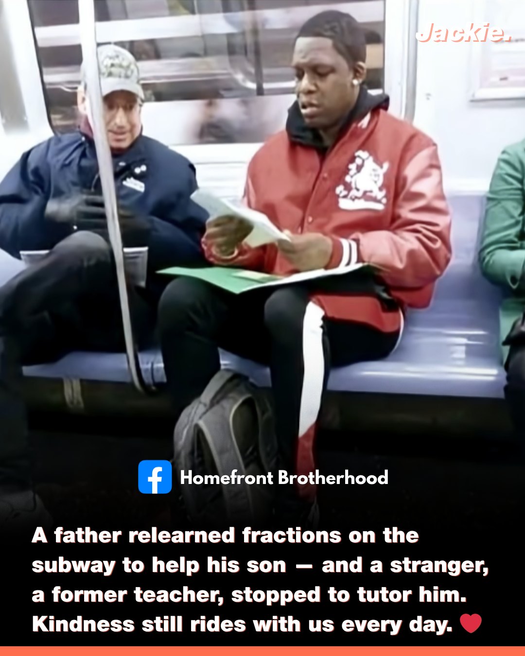When a stranger offered help, he revealed, “I’m reteaching myself so I can teach him.” The stranger, a retired math teacher, spent the rest of the ride tutoring him — step by step.