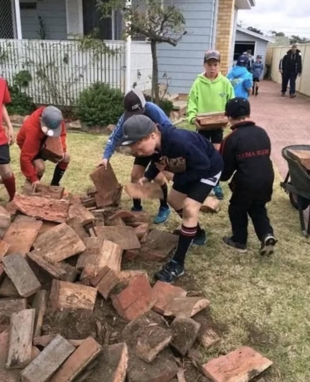 No phones, no fuss, no recognition sought. Just muddy jerseys, strong arms, and kindness in action.