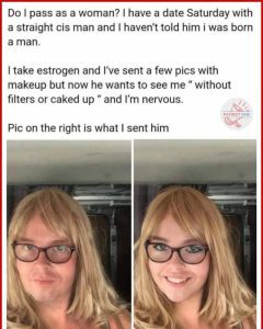 PATRIOTS, he needs your help! Does he pass for a woman?