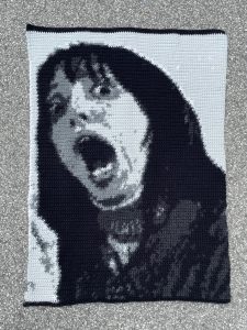 I crocheted Shelley DuVaul in The Shining. 46 hours and 41 minutes. My favorite, and most complicated piece to date. I sent it as a gift to someone as a complete surprise. Measured about 44 ร 32 inches if I’m remembering correctly. He is a fellow artist, and designed an abstract black and white art […]