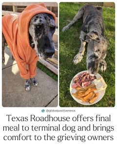 Hunter Metzger from Ephrata, PA, placed a special order at his local Texas Roadhouse for his Great Dane, Iris. + In the special request field of his online order, Metzger wrote: “Last meal for our dog. Please prepare with love.” He ordered an 8-ounce New York strip steak, steak fries, mashed potatoes, and freshly baked […]