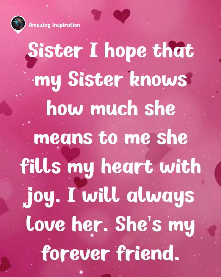 Sister 💕 I hope you know how much you mean to me 🌸 You fill my heart with joy 💫 I’ll always love you — you’re my forever friend ❤️