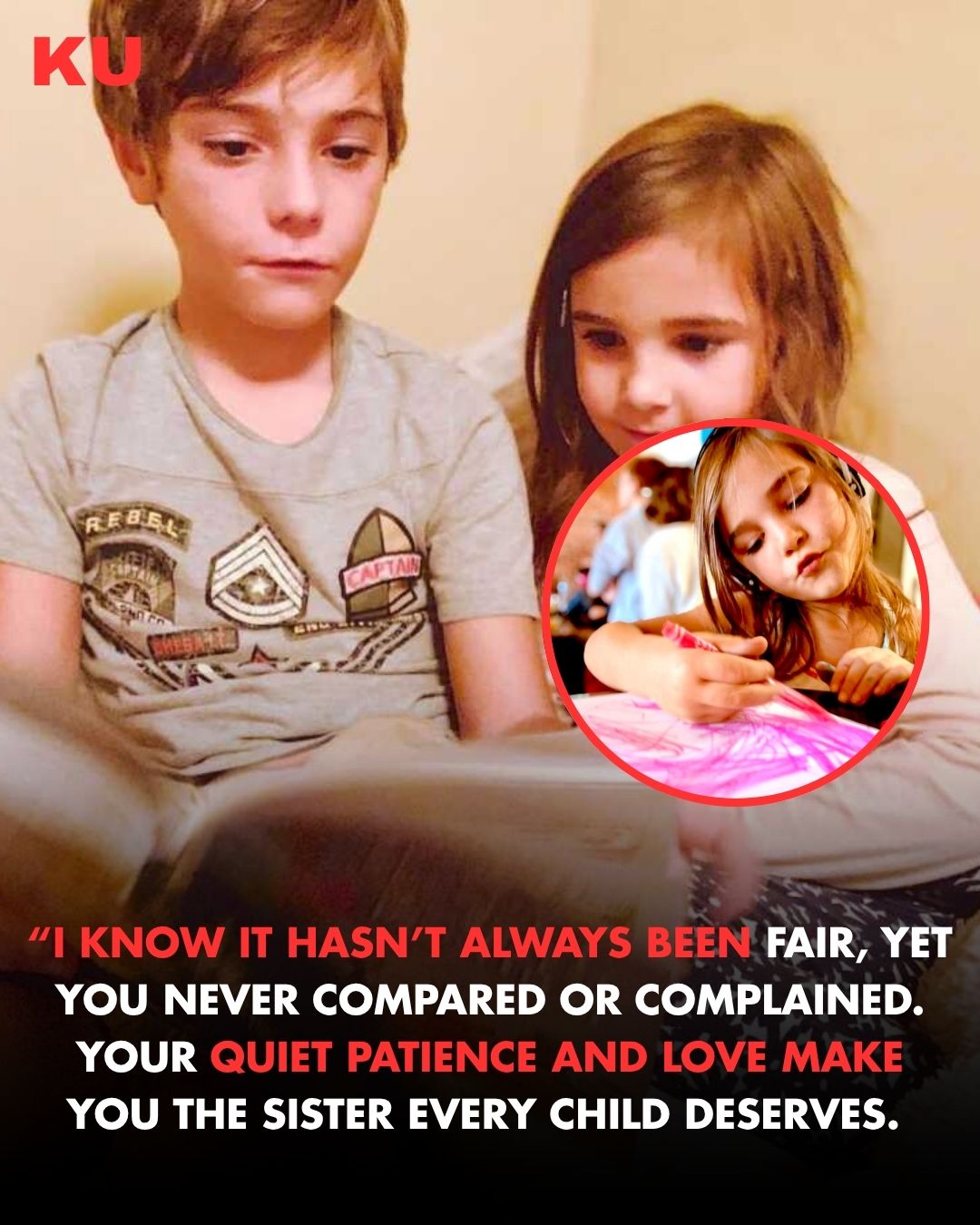 “Sometimes it may seem like I’m always focused on your brother — appointments, therapies, and endless to-dos. I worry that you think I don’t notice you. But I do. I see the way you help, the way you wait, the way you love without question. You are the light that steadies our family, and I couldn’t do this without you.”