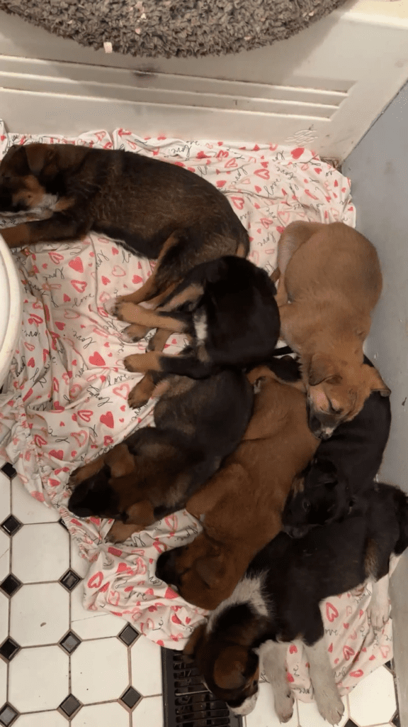 The couple brought the puppies home, offering them warmth, food, and a safe place to rest. Over the following days, the change was miraculous — the once-starving pups grew stronger, their tails began to wag, and trust slowly returned to their eyes.