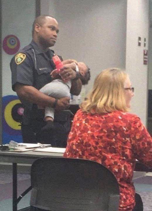 This officer was at the college holding a little girl while her mother took a test. Little girl was sound asleep and the kind officer walked around with her selflessly. I can’t explain the smile this brought to my face, officers do not wear a uniform so they can break rules they wear a uniform so they can help people.