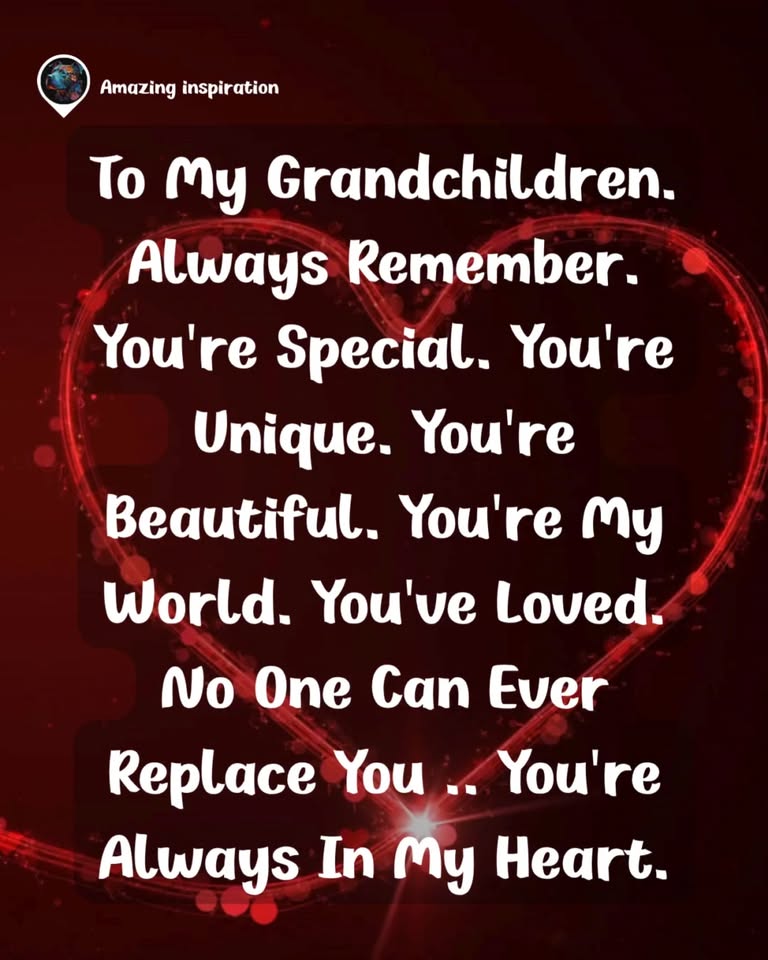 To My Grandchildren 💖 Always remember… you’re special, unique, and beautiful 🌟 You’re my world 🌍 No one can ever replace you 💕 You’re always in my heart ❤️