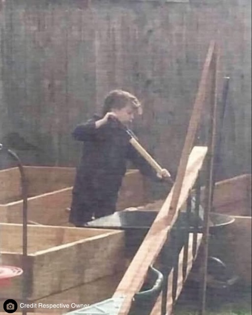 We finished unloading the dirt. The next day, while I was at work, and the kids and Mel had the day off because it was between terms, Mel sent me this picture. Mel picked up another load of dirt and before she had a chance to unload it, Tristan voluntarily started working. When she asked him “why,” he shrugged and said, “Because I love you