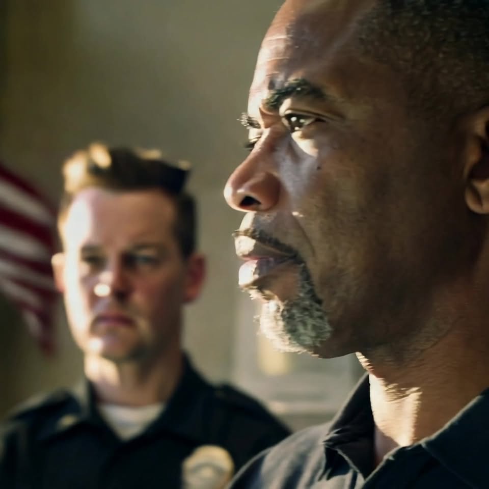 He walked in like any man with a question—plaid shirt, scuffed sneakers, a coffee gone cold in his hand. The lobby smelled like copier toner and winter coats. On the wall: a faded recruitment poster, a bulletin about the county fair, and the flag—edges a little frayed, still holding. “Can I help you?” someone asked without looking up. He said he was “just here to observe.” Calm voice. Soft Carolina drawl. The kind you hear under Friday night stadium lights and in line at the DMV. He stood beside the glass case of retired badges, studying the names like a church program. That’s when the white officer cut through the room—boots loud, humor louder. “Observe what?” he barked. A snicker from the bullpen. The air snapped tight. The officer looked him up and down, took in the jeans, the thrift-store jacket, the quiet way the man didn’t flinch. It happened fast—too fast for anyone to pretend they didn’t see. A wet, ugly sound. Spit. It hit his cheek and slid. The room went dead quiet, except for the fluorescent hum and the scanner chirping an old warrant from two towns over. Someone laughed under their breath. Someone else said, “Aw, come on, man.” A rookie reached for his body cam, like muscle memory. The man didn’t reach for anything. He simply breathed, pulled a folded card from his pocket—the kind of card you get at graduations and funerals—and wiped his face with the slow dignity of a Sunday suit. He looked at the officer the way a judge looks over reading glasses. Not angry. Not surprised. Just… measuring. In the reflection of the lobby glass, you could see the stars on the flag behind him and the red EXIT sign burning over the door. Outside, a siren dopplered past toward the county courthouse, and a school bus exhaled at the corner. “Sir,” the desk sergeant said, standing now. Chairs scraped. A union rep appeared from somewhere nobody had noticed. Phones facedown. Coffee cups midair. The man set the folded card on the desk. A metal line of badges glinted. A clock ticked. Somewhere in the bullpen, a printer spit out three pages and stopped on a half-line. He said seven words. The officer’s grin died first. Then the color in his face. Then the whispers. And before anyone could decide what to apologize for—he did the one thing no one in that room saw coming, the move that would leave boots rooted, mouths dry, and a career’s worth of bravado looking for the nearest exit… with consequences that would turn more than one face pale with fear—and regret.